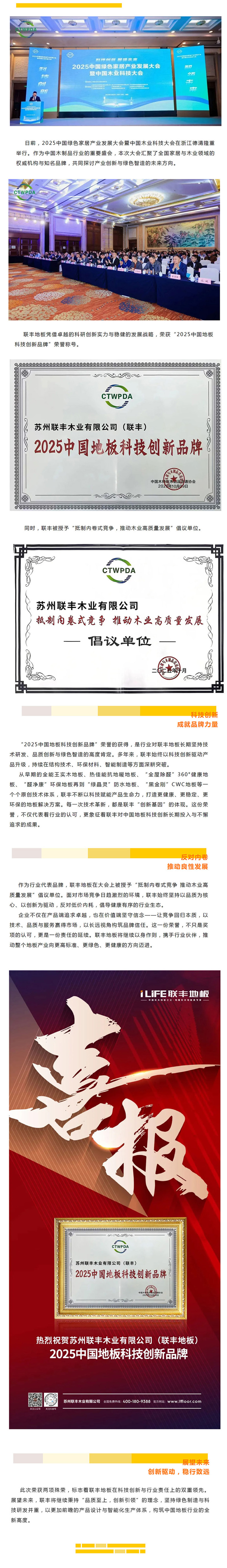 联丰地板荣获“中国地板科技创新品牌”,闪耀木业科技大会